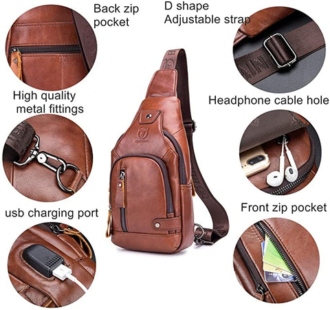 - 【MULTIFUNCTIONAL SLING BAGS】- this casual leather chest bag designed with more practical to meet your daily use---3 outer pockets and a main pocket for putting anything in their right position